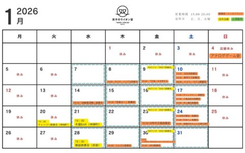 あけましておめでとう。 双子のライオン堂の店主・竹田です。 本年もどうぞよろしくお願いします。 さっそくですが、2026年1月の営業についてお知らせします。 基本の営業日時は通常下記の通りです。 水〜土曜 15:00〜2...