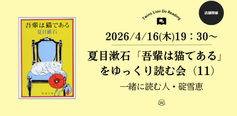 【店舗開催】2026/4/16(木) 19:30〜夏目漱石「吾輩は猫である」をゆっくり読む会by一緒に読む人・碇雪恵(11)最終回